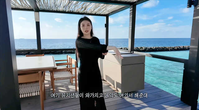 据视频试验,两东谈主先从韩国飞往迪拜中转,再乘坐约40分钟的水上飞机抵达马尔代夫闻明的五星级度假村。